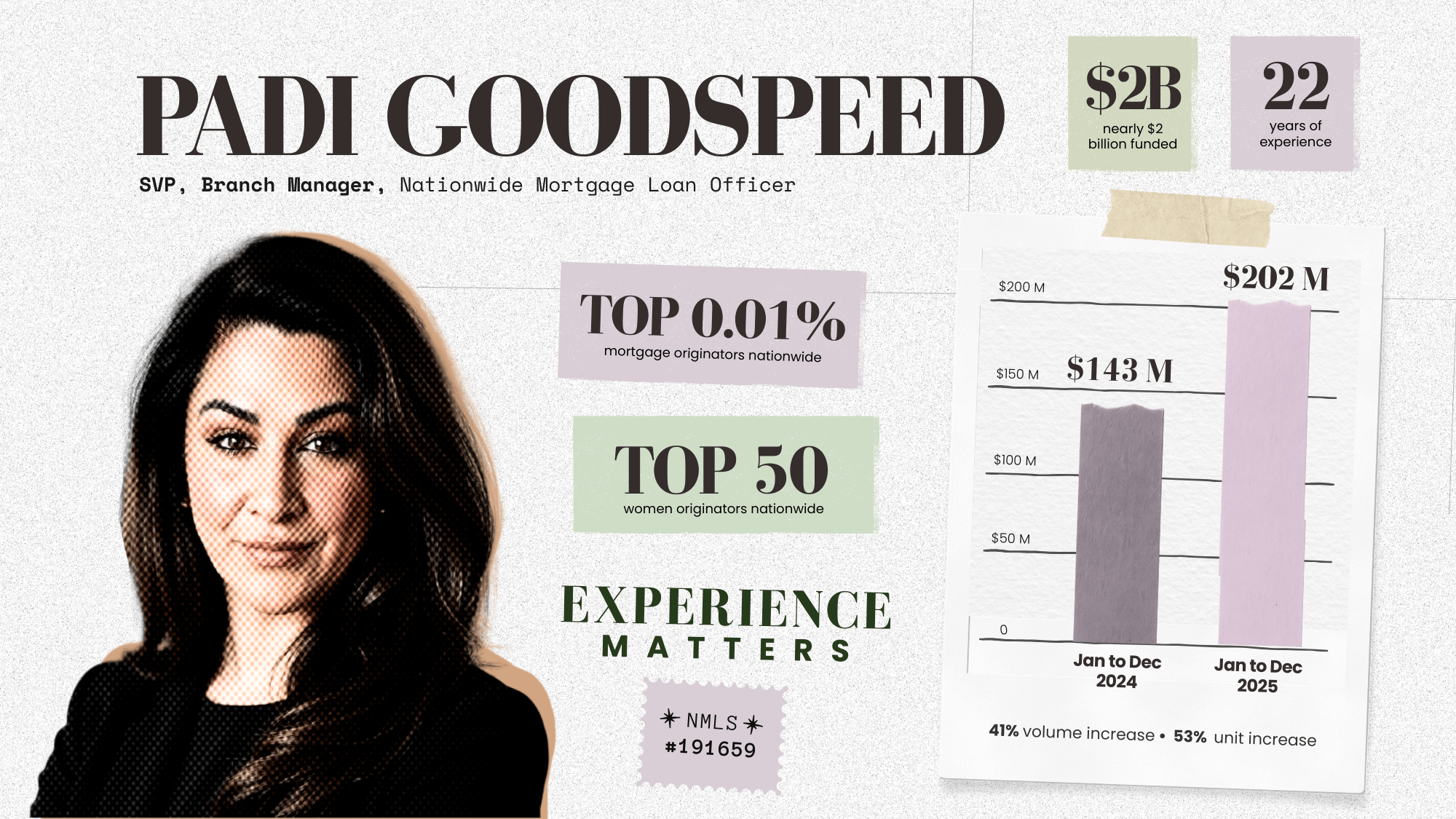 Padi Goodspeed has been in the lending industry since 2002 and has been recognized as one of the top 100 women in mortgage origination.